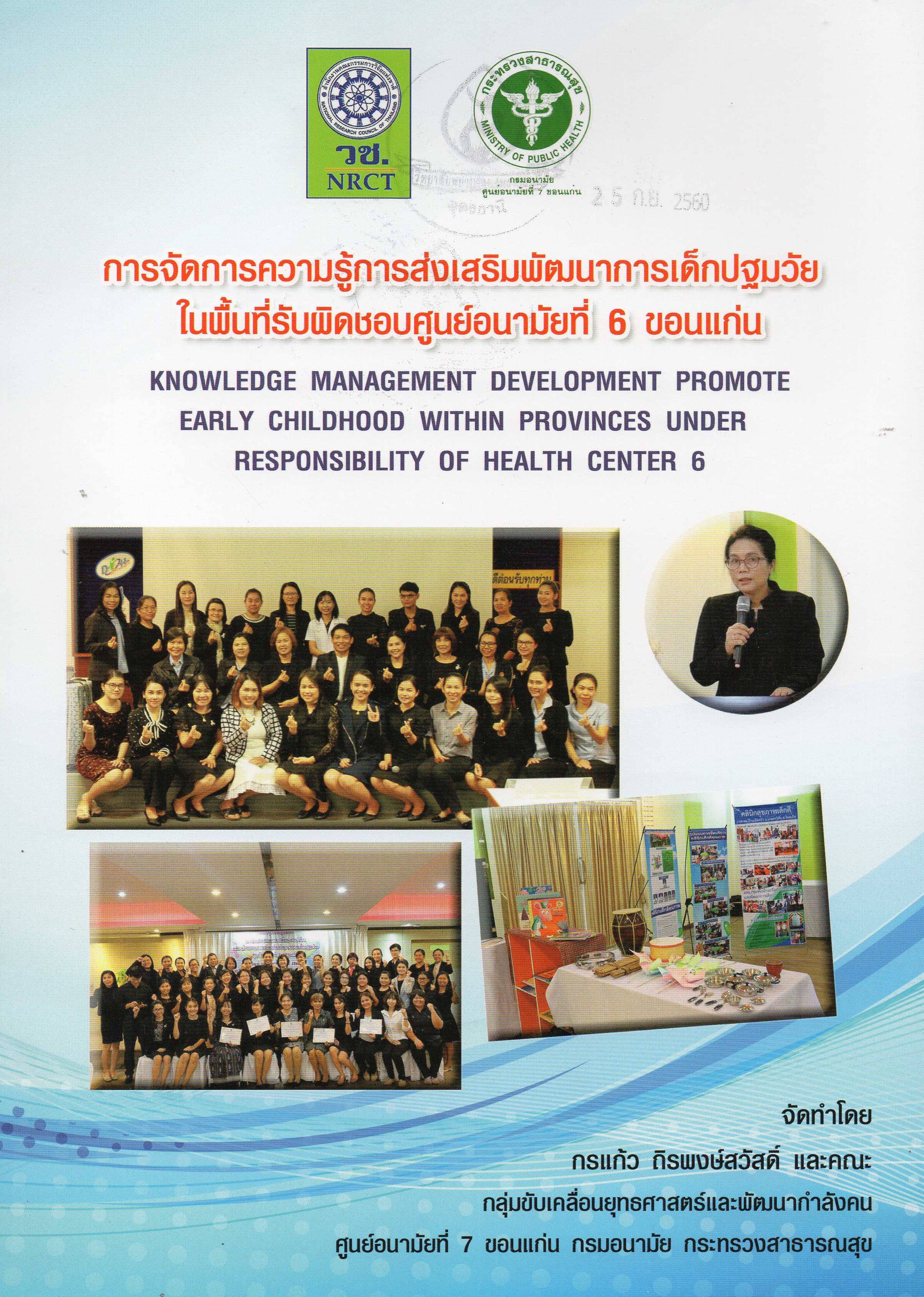 การจัดการความรู้การส่งเสริมพัฒนาการเด็กปฐมวัยในพื้นที่รับผิดชอบศูนย์อนามัยที่ 6 ขอนแก่น / กรแก้ว ถิรพงษ์สวัสดิ์ ,จันทร์ธรา สมตัว, พรพรรณ นามตะ และมณฑินี จุลละนันท์