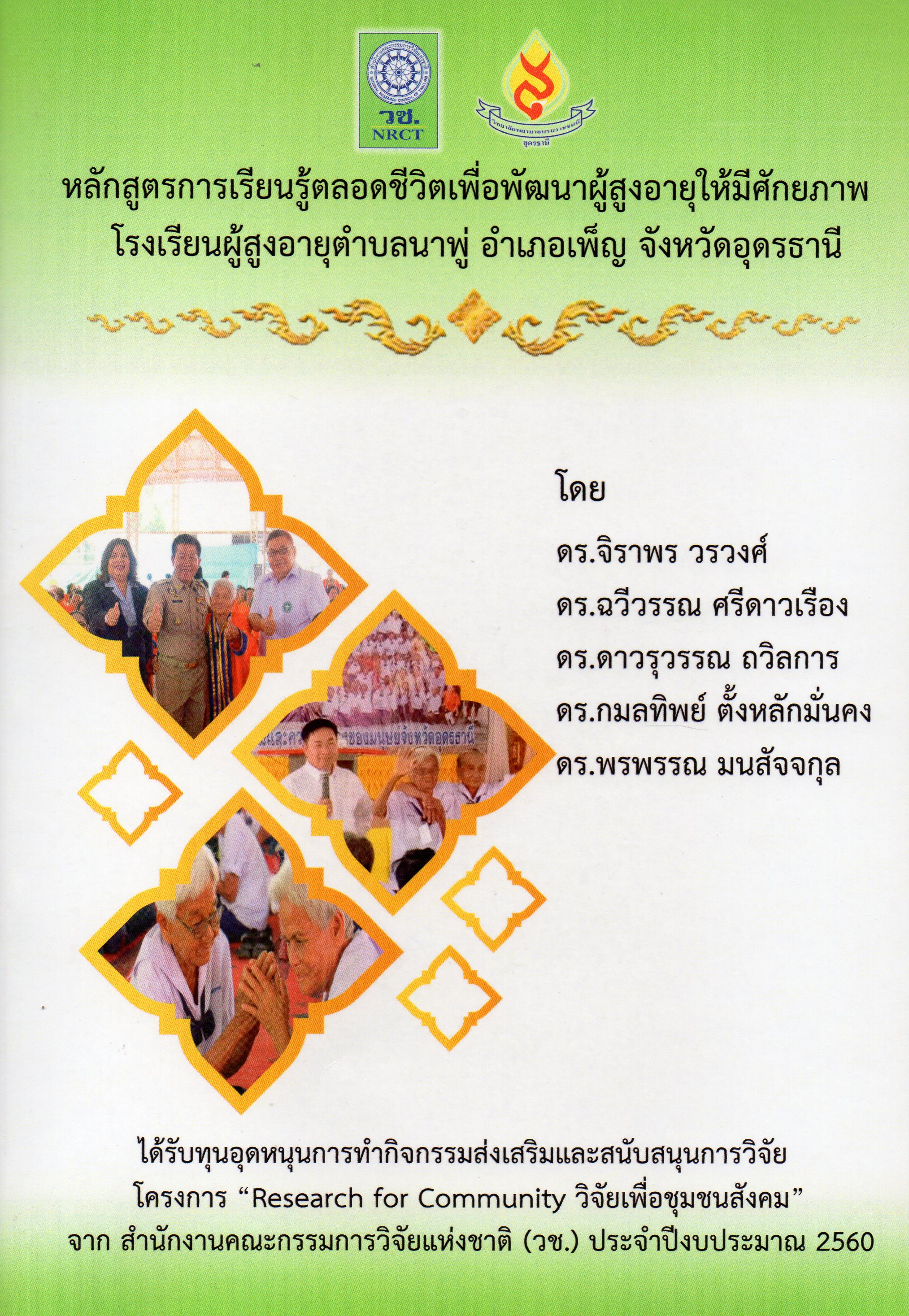 หลักสูตรการเรียนรู้ตลอดชีวิตเพื่อพัฒนาผู้สูงอายุให้มีศักยภาพ โรงเรียนผู้สูงอายุตำบลนาพู่ อำเภอเพ็ญ จังหวัดอุดรธานี/ จิราพร วรวงศ์,ฉวีวรรณ ศรีดาวเรือง, ดาวรุวรรณ ถวิลการ, กมลทิพย์ ตั้งหลักมั่นคง, และพรพรรณ มนสัจกุล | | พิมพ์ลักษณ์ |