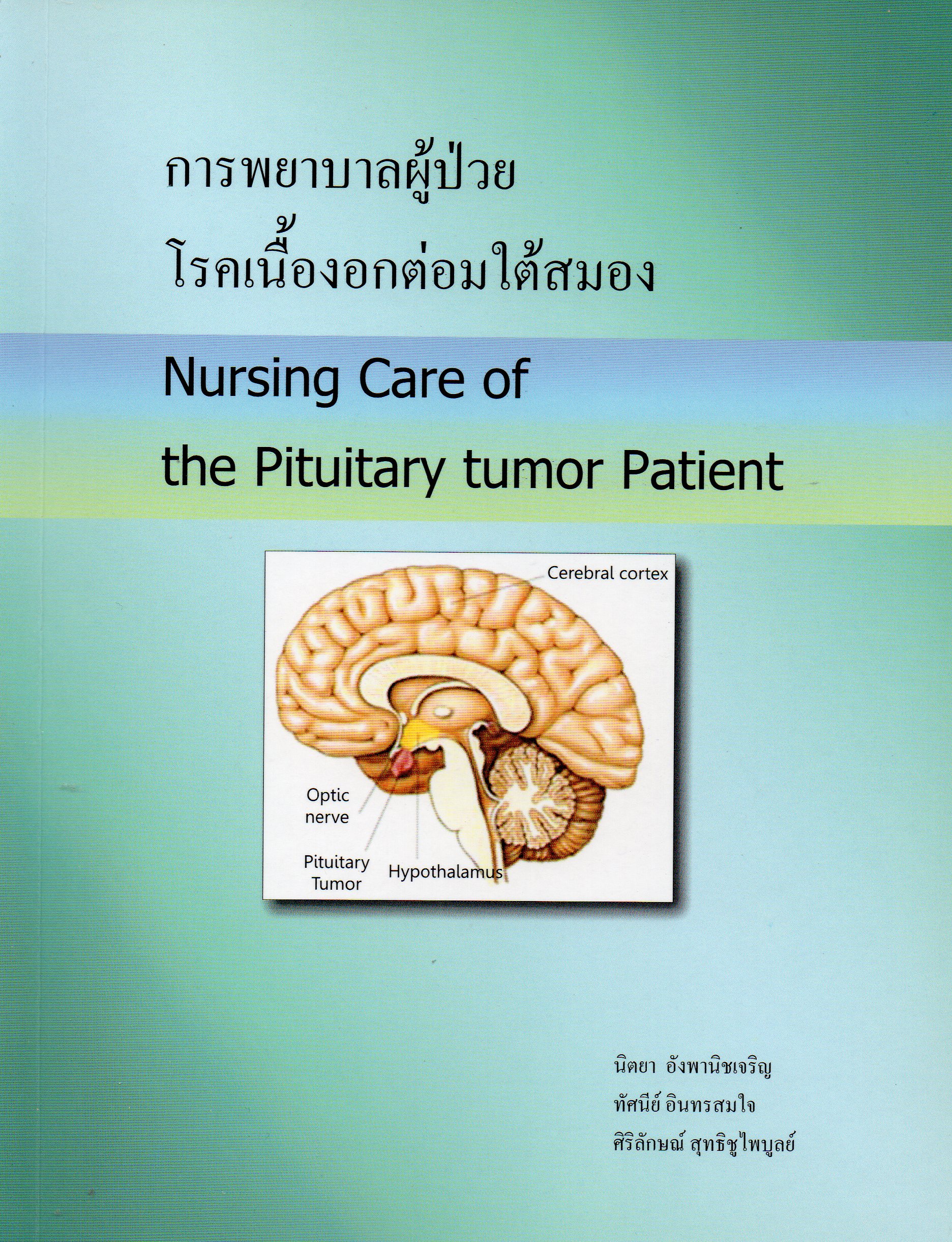 การพยาบาลผู้ป่วยโรคเนื้องอกต่อมใต้สมอง = Nursing care ofthe pituitary tumor patient / [เรียบเรียงโดย] นิตยาอังพานิชเจริญ, ทัศนีย์ อินทรสมใจ, ศิริลักษณ์สุทธิชูไพบูลย์ ; [บรรณาธิการ สุพร ลิลิตธรรม]