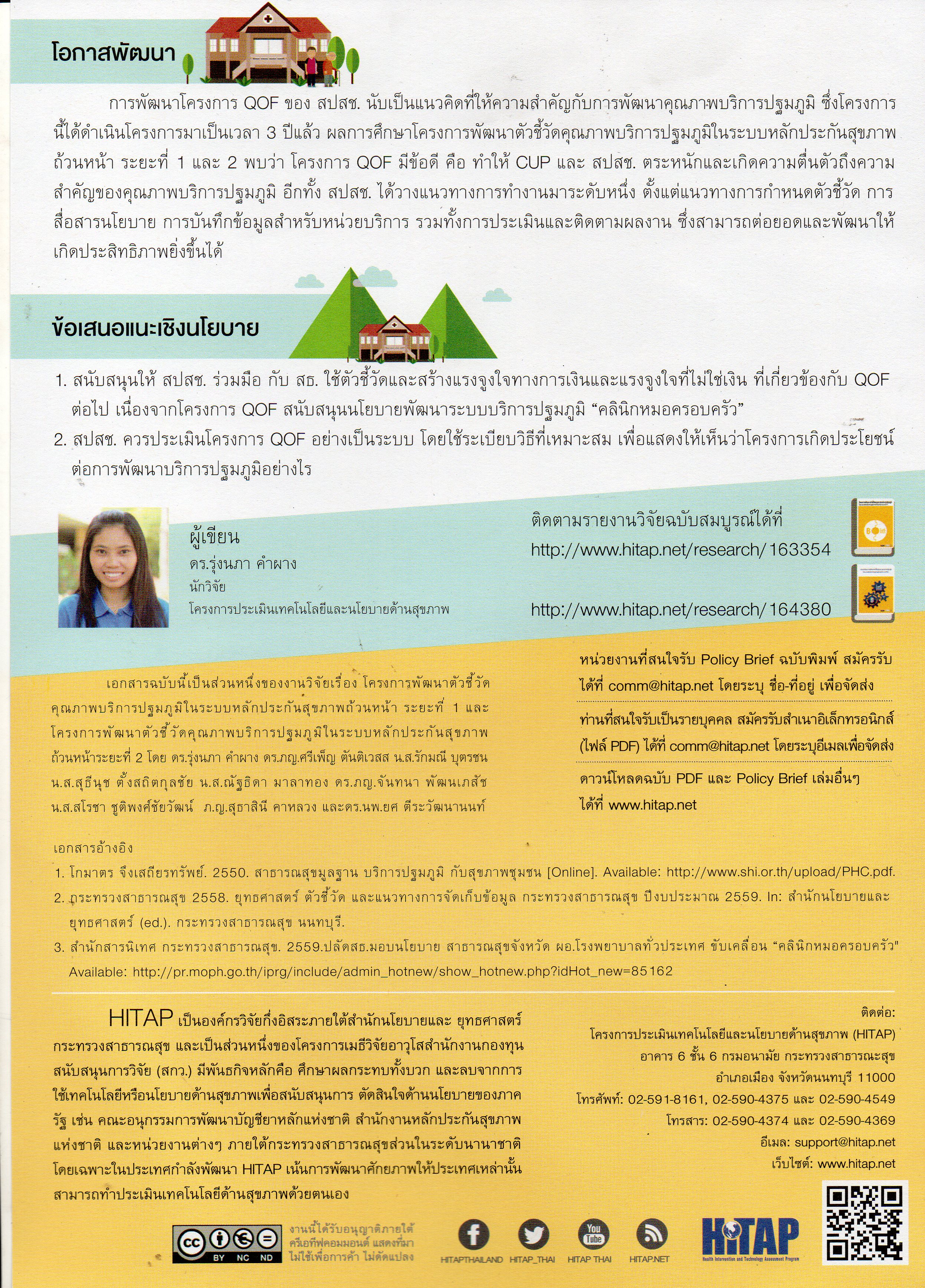พิมพ์ลักษณ์  นนทบุรี โครงการประเมินเทคโนโลยีและนโยบายด้านสุขภาพ (HITAP), 2559