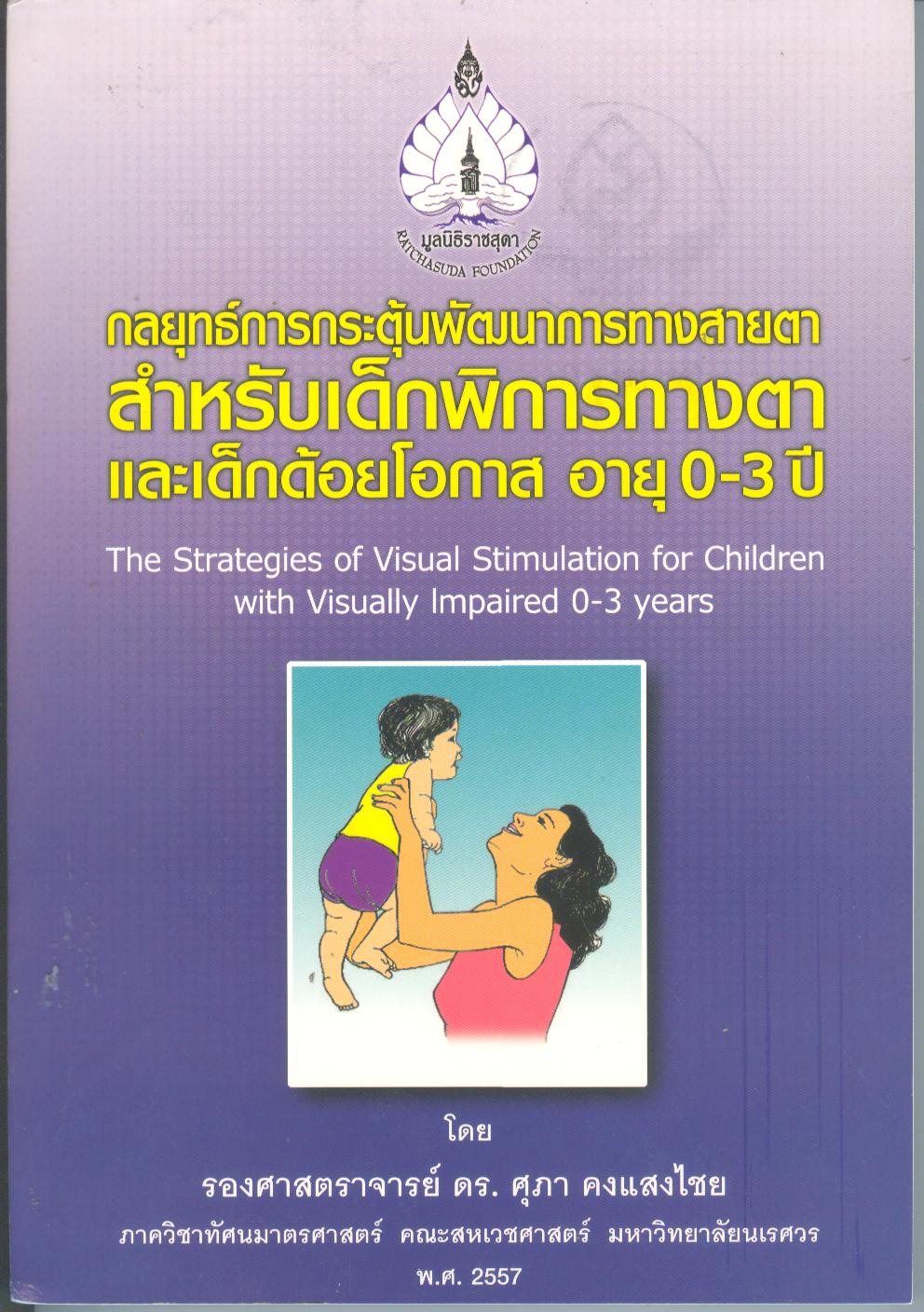 กลยุทธ์การกระตุ้นพัฒนาการทางสายตาสำหรับเด็กพิการทางตาและเด็กด้อยโอกาส อายุ 0-3 ปี / ศุภา คงแสงไชย | | ISBN |