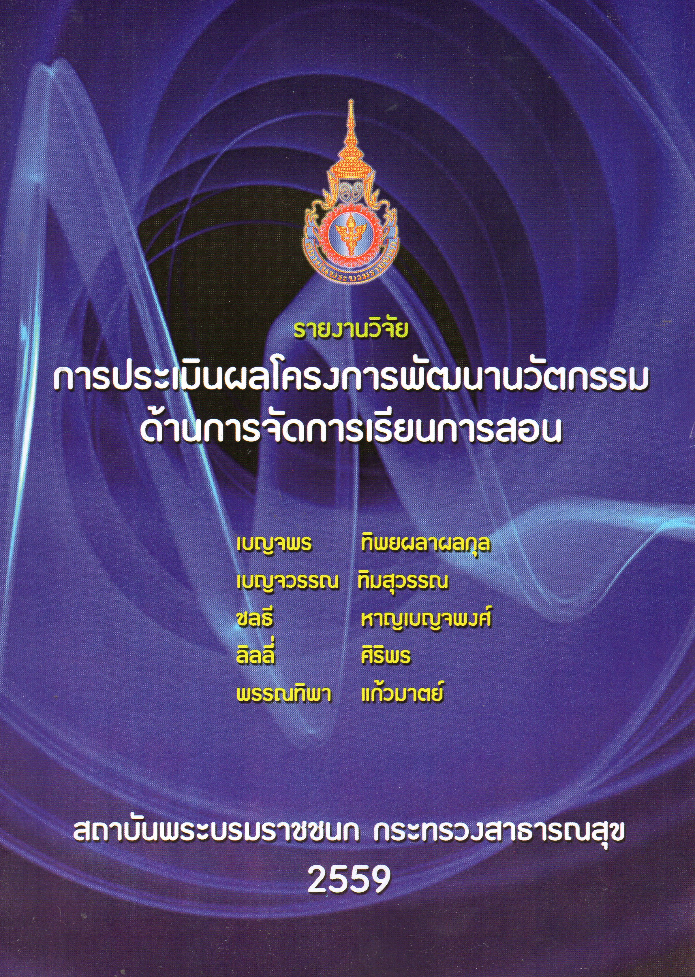รายงานวิจัยการประเมินผลโครงการพัฒนานวัตกรรมด้านการจัดการเรียนการสอน/ เบญจพร ทิพยผลาผลกุล, เบญจวรรณ ทิมสุวรรณ, ชลธี หาญเบญจพงศ์, ลิลลี่ ศิริพร และพรรณทิพา แก้วมาตย์
