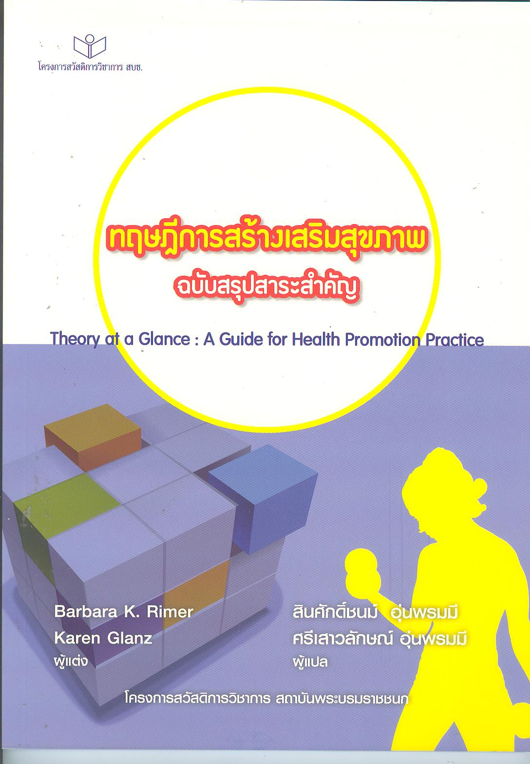 ทฤษฎีการสร้างเสริมสุขภาพ : ฉบับสรุปสาระสำคัญ / Barbara KRimer, Karen Glanz ผู้แต่ง ; สินศักดิ์ชนม์ อุ่นพรมมี,ศรีเสาวลักษณ์ อุ่นพรมมี ผู้แปล