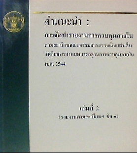 ชื่อเรื่องที่แตกต่าง  การจัดทำรายงานการควบคุมภายในตามระเบียบคณะกรรมการตรวจเงินแผ่นดินว่าด้วยการกำหนดมาตรฐานการควบคุมภายใน พ.ศ. 2544. เล่ม 2 (รายงานตามระเบียบฯ ข้อ 6)