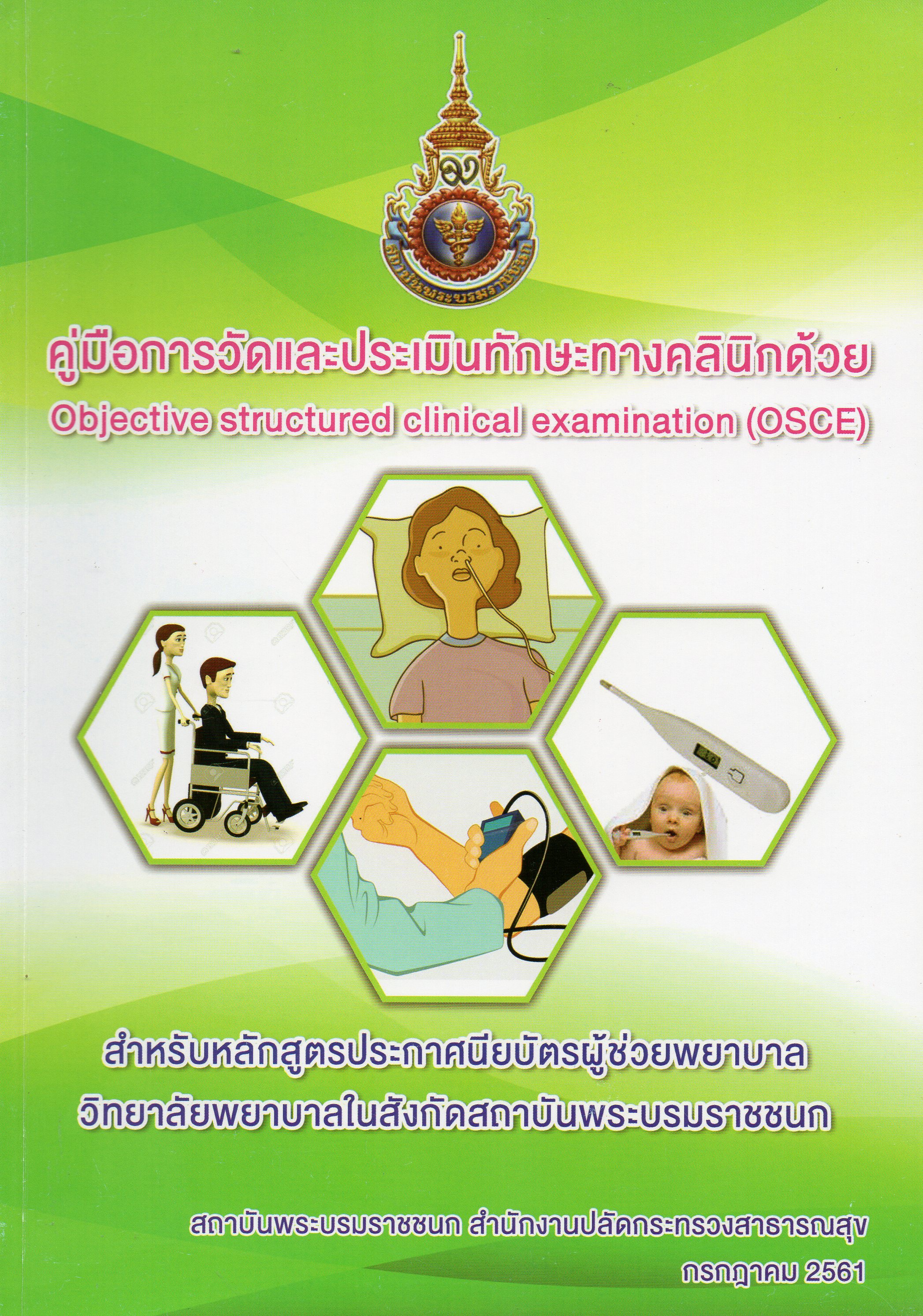 คู่มือการวัดและประเมินทักษะทางคลินิกด้วย Objective structured clinical examination (OSCE) : สำหรับหลักสูตรประกาศนียบัตรผู้ช่วยพยาบาล วิทยาลัยพยาบาลในสังกัดสถาบันพระบรมราชชนก / คณะอาจารย์วิทยาลัยพยาบาลในสังกัดสถาบันพระบรมราชชนก, อัจฉรา จั่นเพ็ชร์, วรากร คามรักษ์ และอนุวัตร์ นิลเผือก |