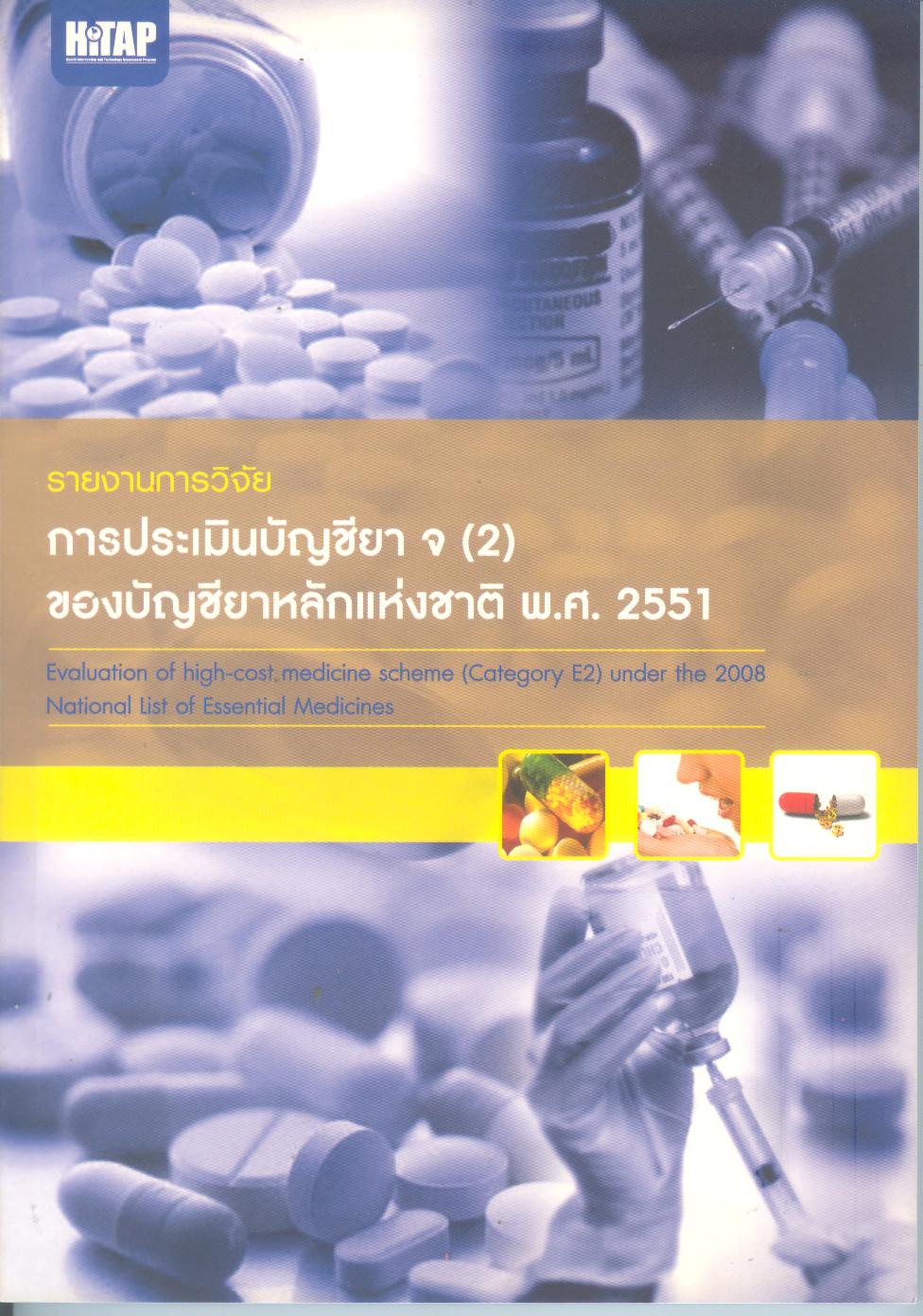 รายงานการวิจัย การประเมินบัญชียา จ (2) ของบัญชียาหลักแห่งชาติ พ.ศ.2551 / เสาวลักษณ์ ตุรงคราวี ... [และคนอื่น ๆ]