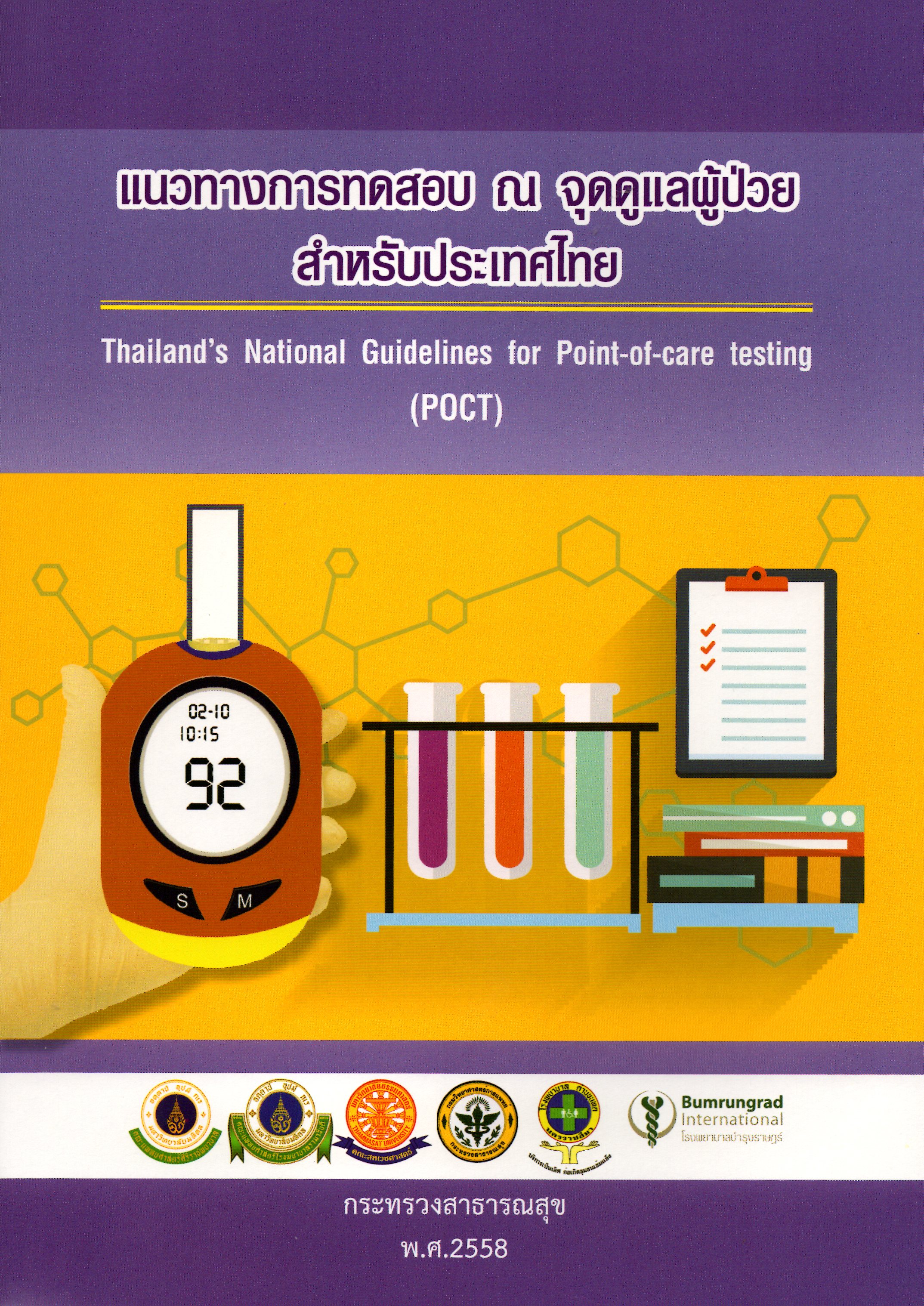 แนวทางการทดสอบ ณ จุดดูแลผู้ป่วยสำหรับประเทศไทย = Thailand's national guidelines for point-of-care testing(POCT) / คณะบรรณาธิการ จุรีภรณ์ บุณยวงศ์วิโรจน์ ...[และคนอื่น ๆ]