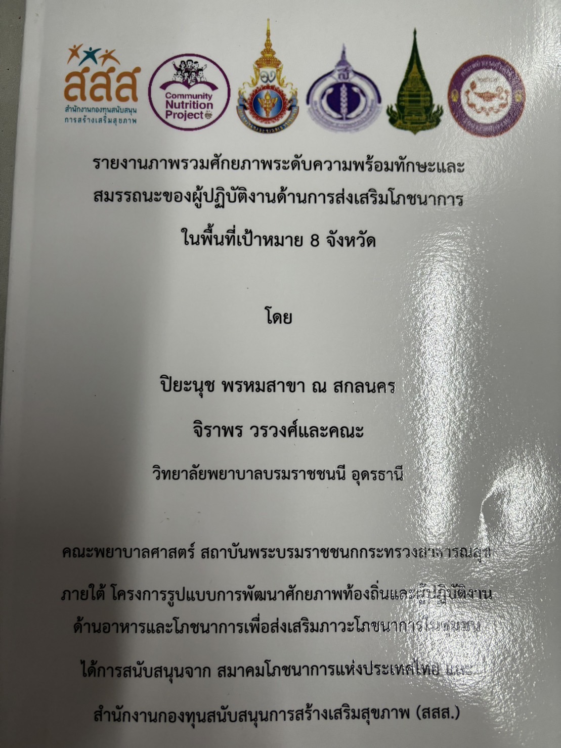 รายงานภาพรวมศักยภาพระดับความพร้อมทักษะและสมรรถนะของผู้ปฏิบัติงานด้านการส่งเสริมโภชนาการในพื้นที่เป้าหมาย 8 จังหวัด/ ปิยะนุช พรหมสาขา ณ สกลนคร... [และคนอื่น ๆ]