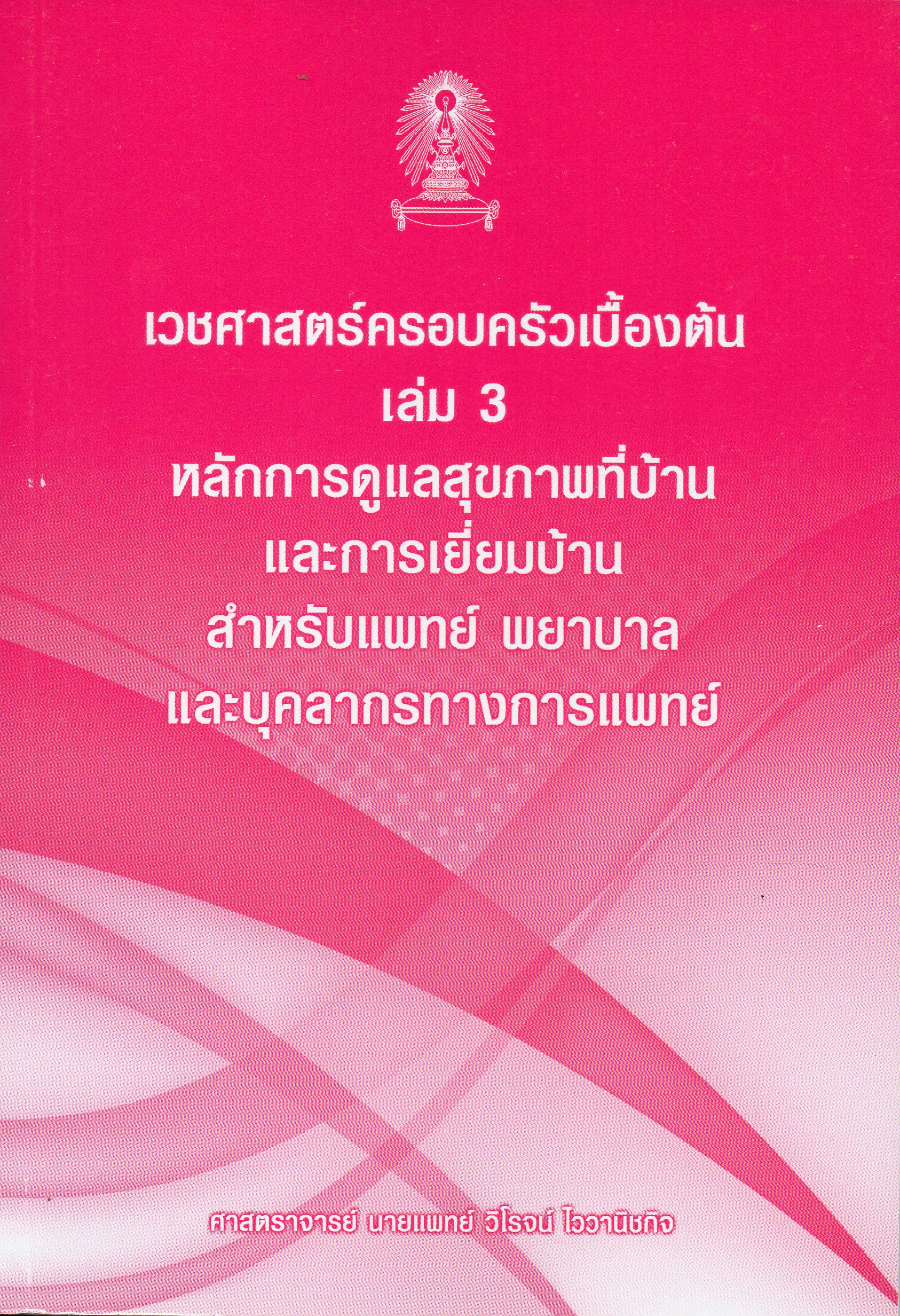 เวชศาสตร์ครอบครัวเบื้องต้น เล่ม 3 หลักการดูแลสุขภาพที่บ้านและการเยี่ยมบ้านสำหรับแพทย์ พยาบาลและบุคลากรทางการแพทย์/ วิโรจน์ ไววานิชกิจ