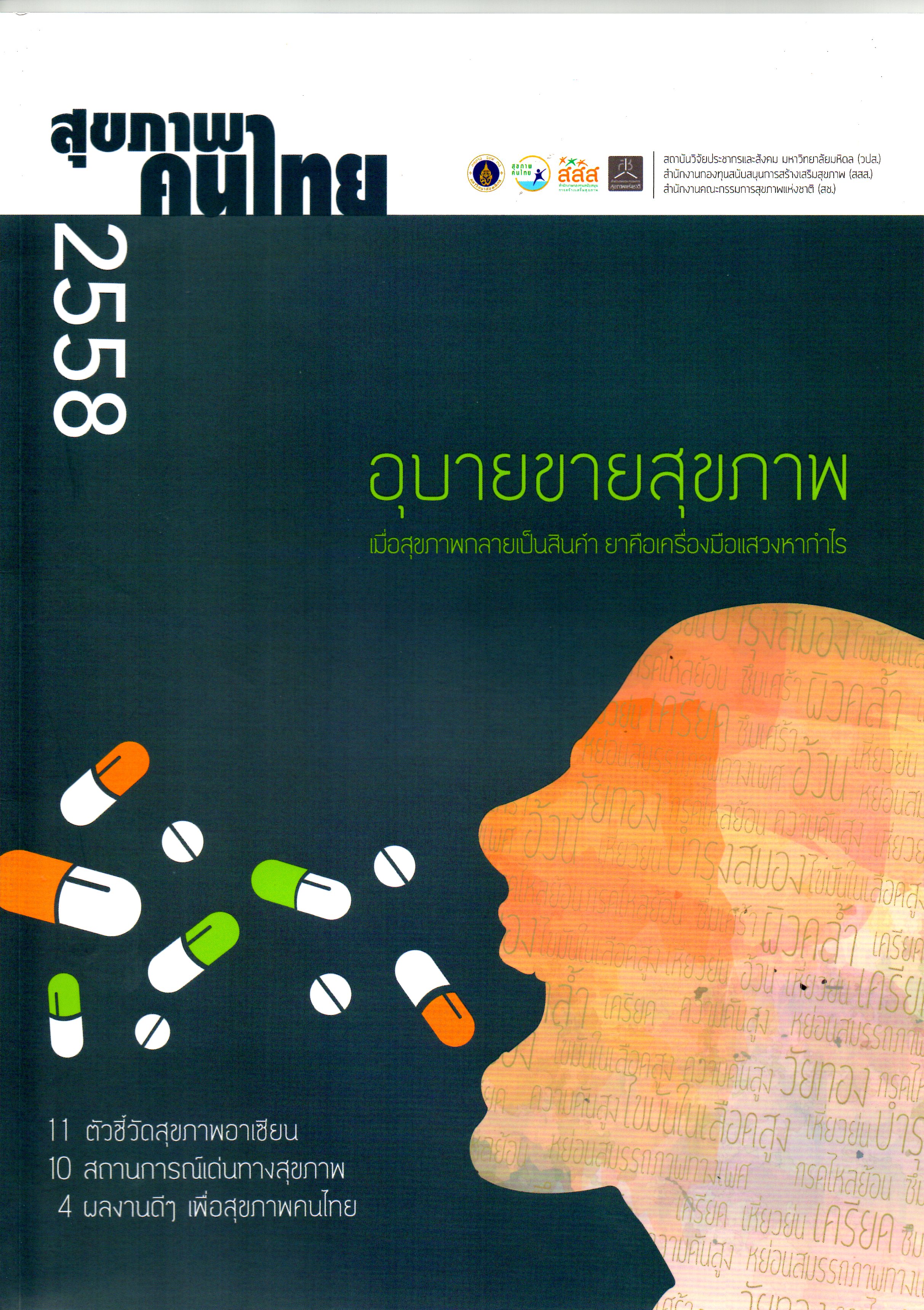สุขภาพคนไทย 2558 : อุบายขายสุขภาพ เมื่อสุขภาพกลายเป็นสินค้า ยาคือเครื่องมือแสวงหากำไร / สถาบันวิจัยประชากรและสังคม มหาวิทยาลัยมหิดล