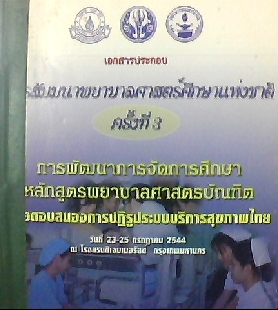 ผู้แต่ง  การสัมมนาพยาบาลศาสตร์ศึกษาแห่งชาติ ครั้งที่ 3 (2544 : กรุงเทพมหานคร)