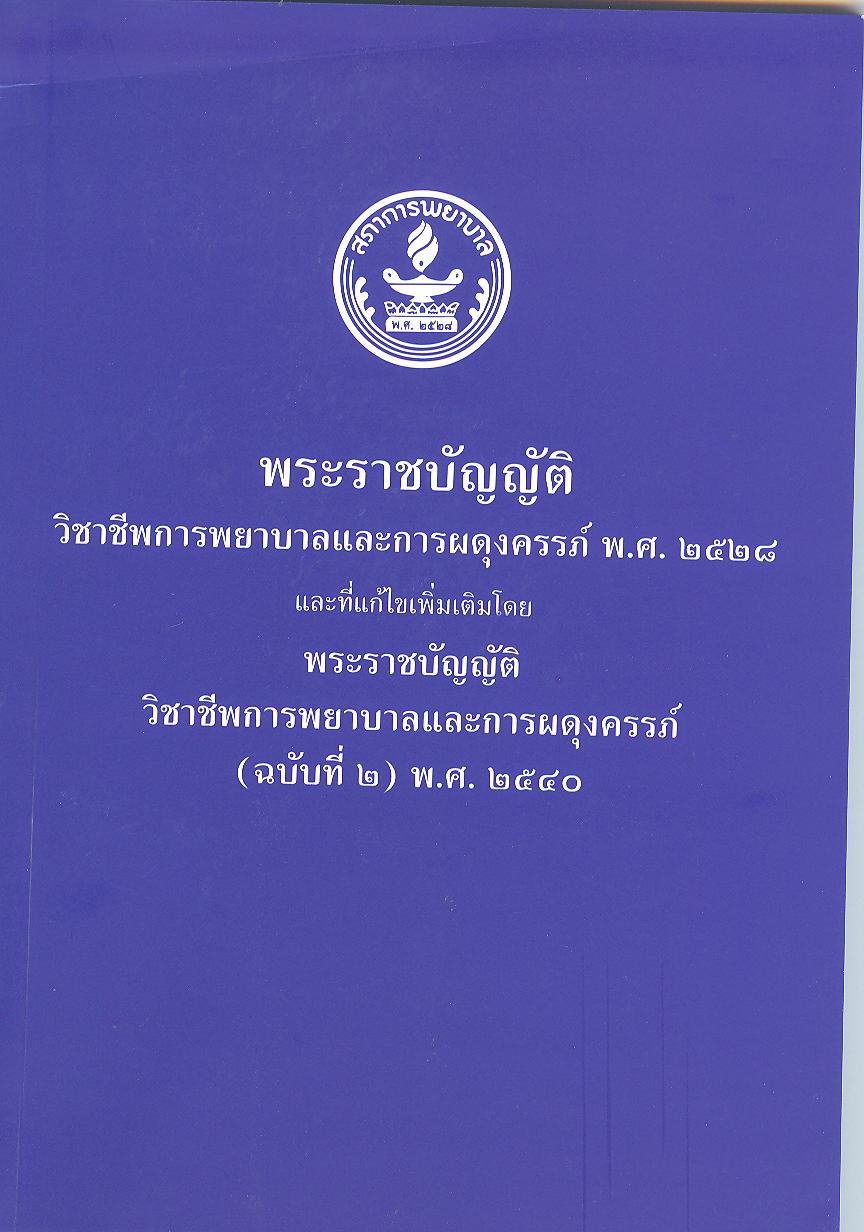 พระราชบัญญัติวิชาชีพการพยาบาลและการผดุงครรภ์ พ.ศ. 2528 และที่แก้ไขเพิ่มเติมโดยพระราชบัญญัติวิชาชีพการพยาบาลและการผดุงครรภ์ (ฉบับที่ 2) พ.ศ. 2540 ฉบับภาษาไทยและภาษาอังกฤษ/ คณะอนุกรรมการร่างข้อบังคับและระเบียบสภาการพยาบาล
