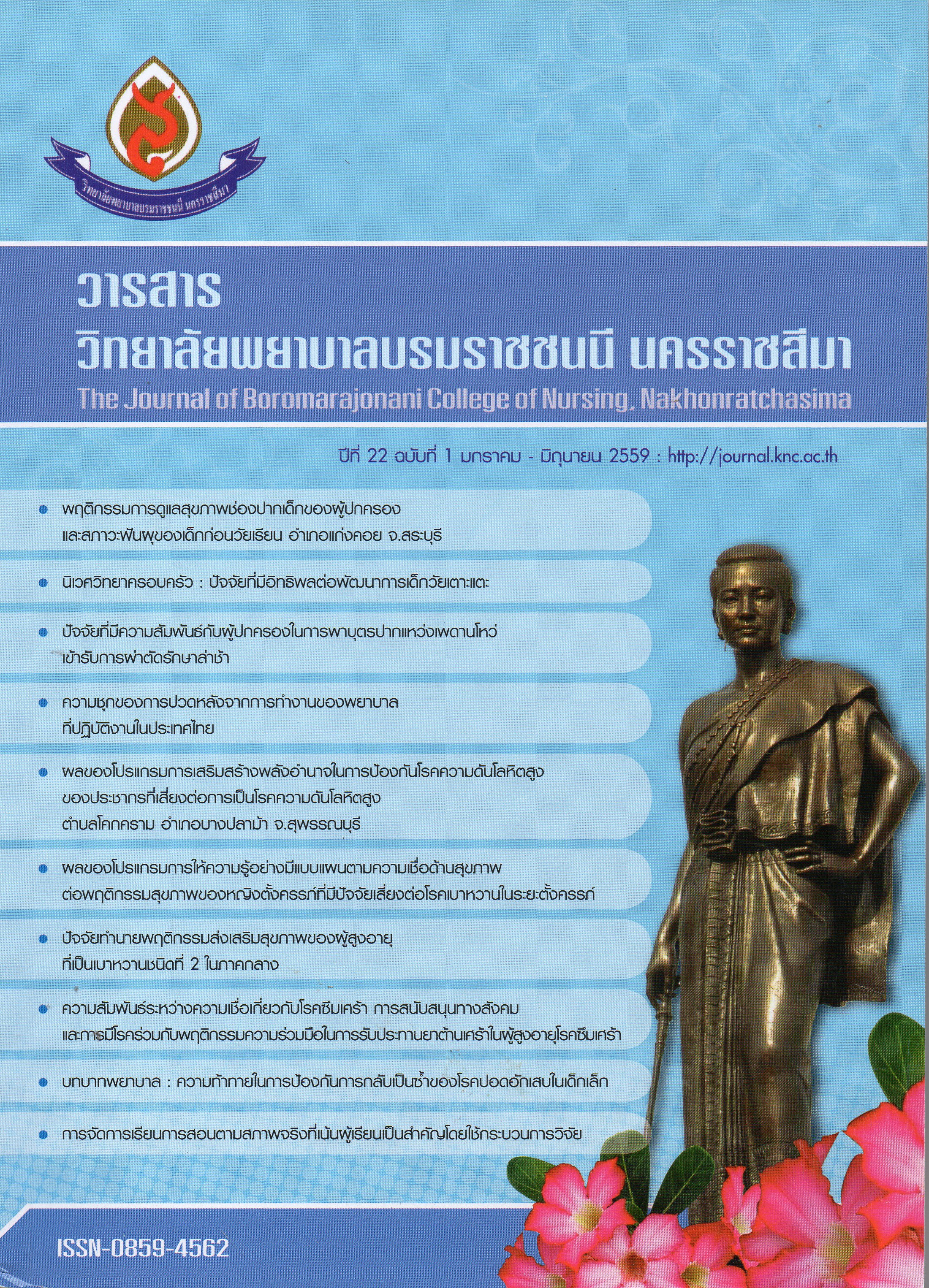 The Journal of Boromarajonani College of Nursing, Nakhonratchasima | | ISBN |