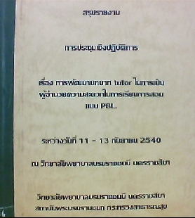 สรุปรายงานการประชุมเชิงปฏิบัติเรื่องการพัฒนาบทบาท tutor ในการเป็นผู้อำนวยการความสะดวกในการเรียนการสอนแบบ PBL/ นครราชสีมา, วิทยาลัยพยาบาลบรมราชชนนี