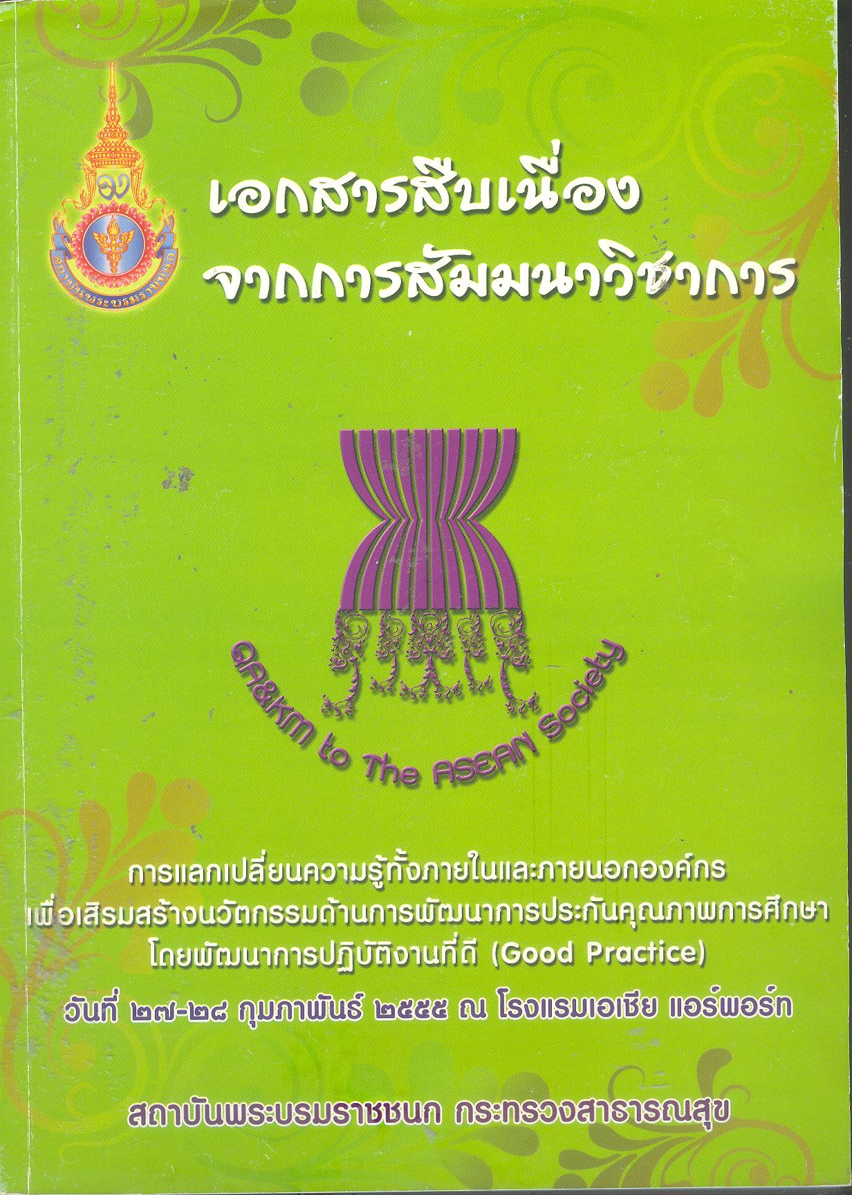 เอกสารสืบเนื่องจากการสัมมนาวิชาการ : การแลกเปลี่ยนความรู้ทั้งภายในและภายนอกองค์กรเพื่อเสริมสร้างนวัตกรรมด้านการพัฒนาการประกันคุณภาพการศึกาโดยพัฒนาการปฏิบัติงานที่ดี (Good practice) วันที่ 27-28 กุมภาพันธ์ 2555 ณ โรงแรมเอเชีย แอร์พอร์ท