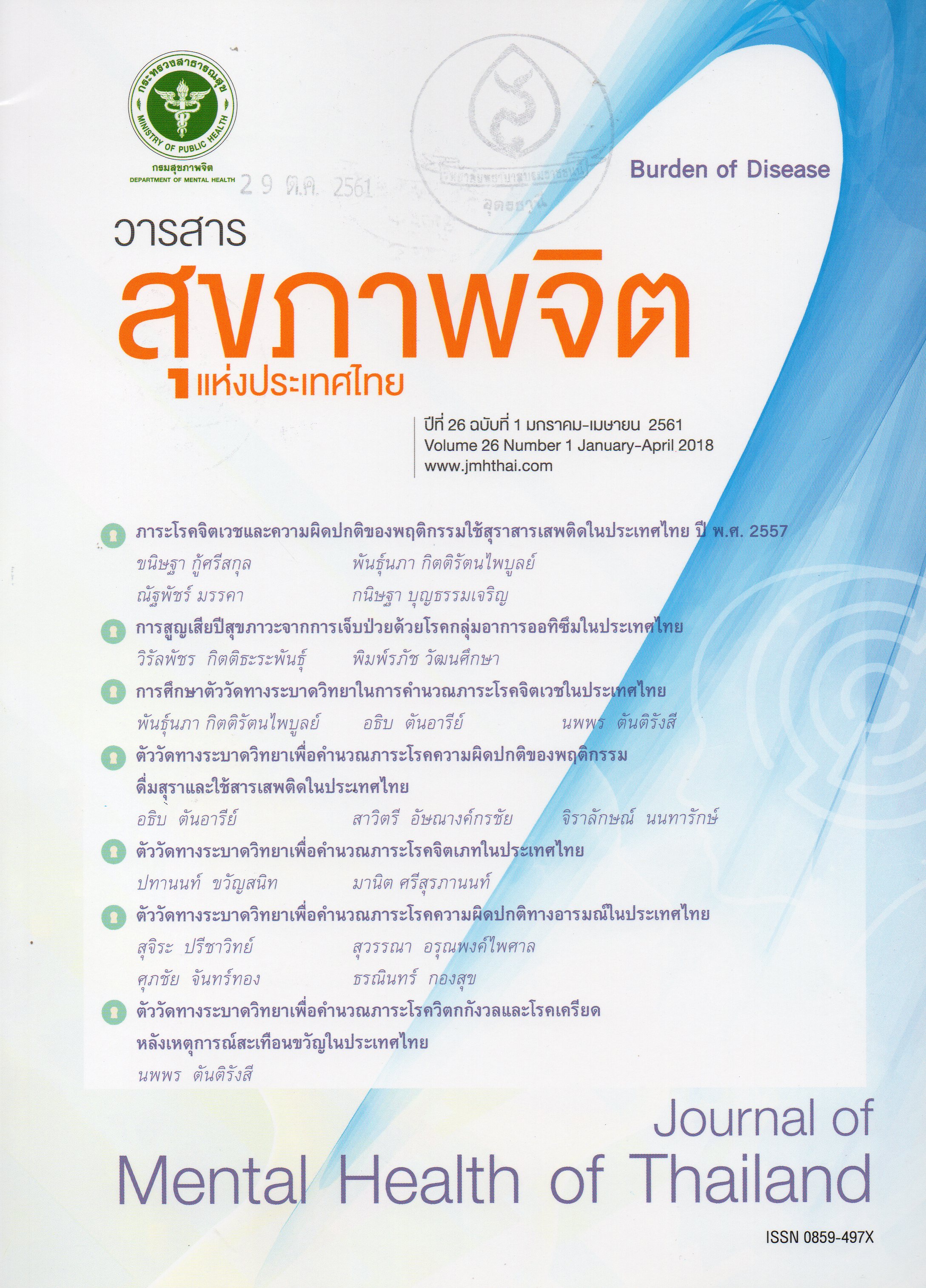 วารสารสุขภาพจิตแห่งประเทศไทย = Journal of mental health of Thailand
