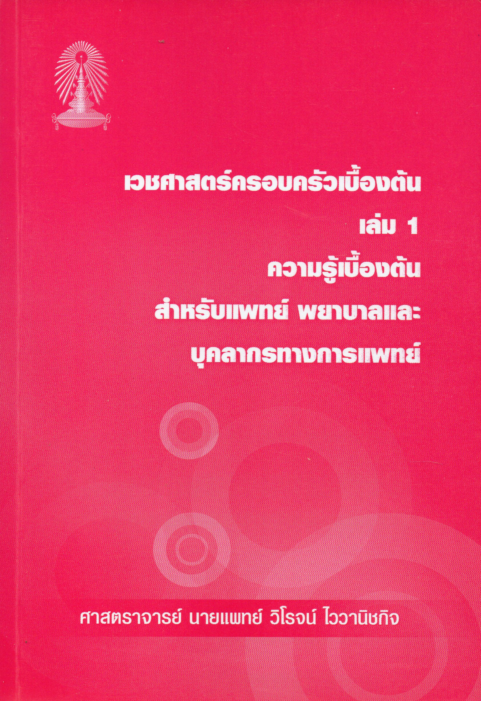 เวชศาสตร์ครอบครัวเบื้องต้น เล่ม 1 ความรู้เบื้องต้นสำหรับแพทย์ พยาบาลและบุคลากรทางการแพทย์/ วิโรจน์ ไววานิชกิจ