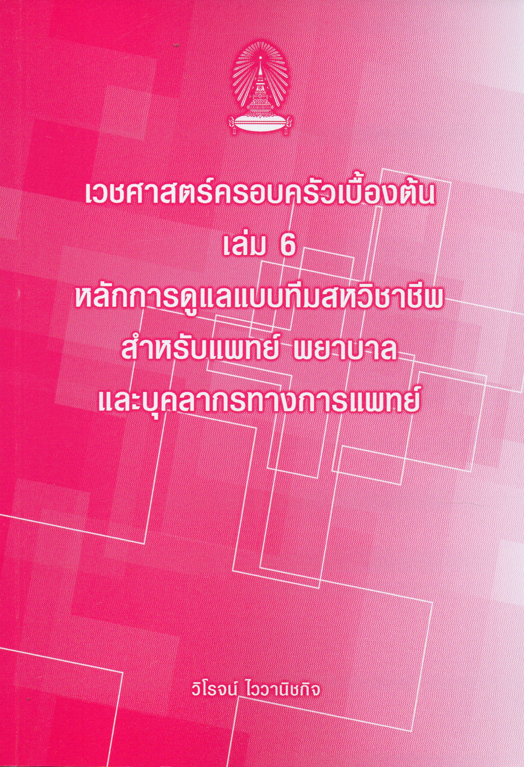 เวชศาสตร์ครอบครัวเบื้องต้น เล่ม 6 หลักการดูแลแบบทีมสหวิชาชีพสำหรับแพทย์ พยาบาลและบุคลากรทางการแพทย์/ วิโรจน์ ไววานิชกิจ