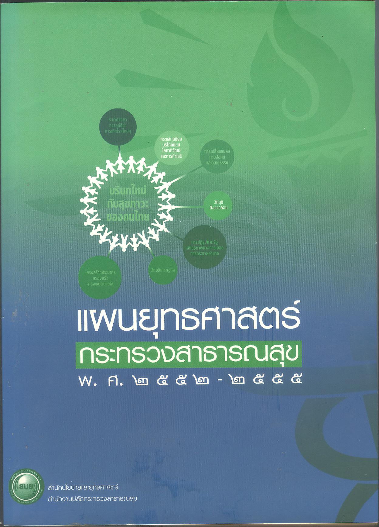 แผนยุทธศาสตร์กระทรวงสาธารณสุข พ.ศ.2552-2555 / สำนักนโยบายและยุทธศาสตร์ | | ISBN |