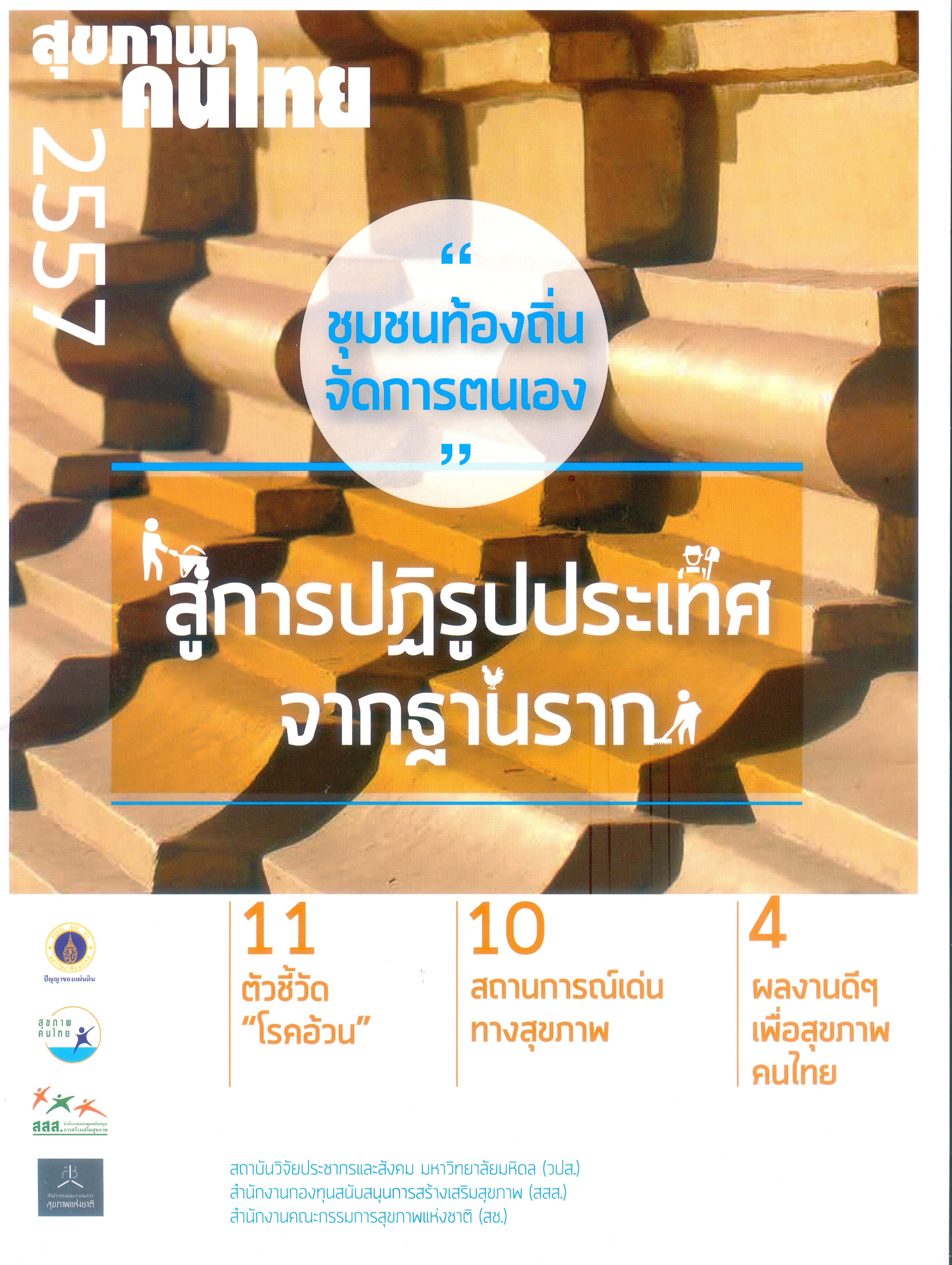 สุขภาพคนไทย 2557 : ชุมชนท้องถิ่นจัดการตนเอง...สู่การปฏิรูปประเทศจากฐานราก / สถาบันวิจัยประชากรและสังคม มหาวิทยาลัยมหิดล