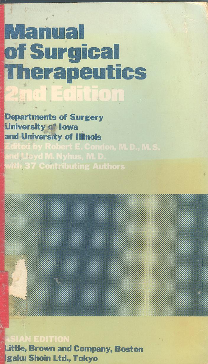 Manual of surgical therapeutics / Department of Surgery,University of Towa and University of Illinois ; editors: Robert E. Condon and Lloyd M. Nyhus | | ISBN |